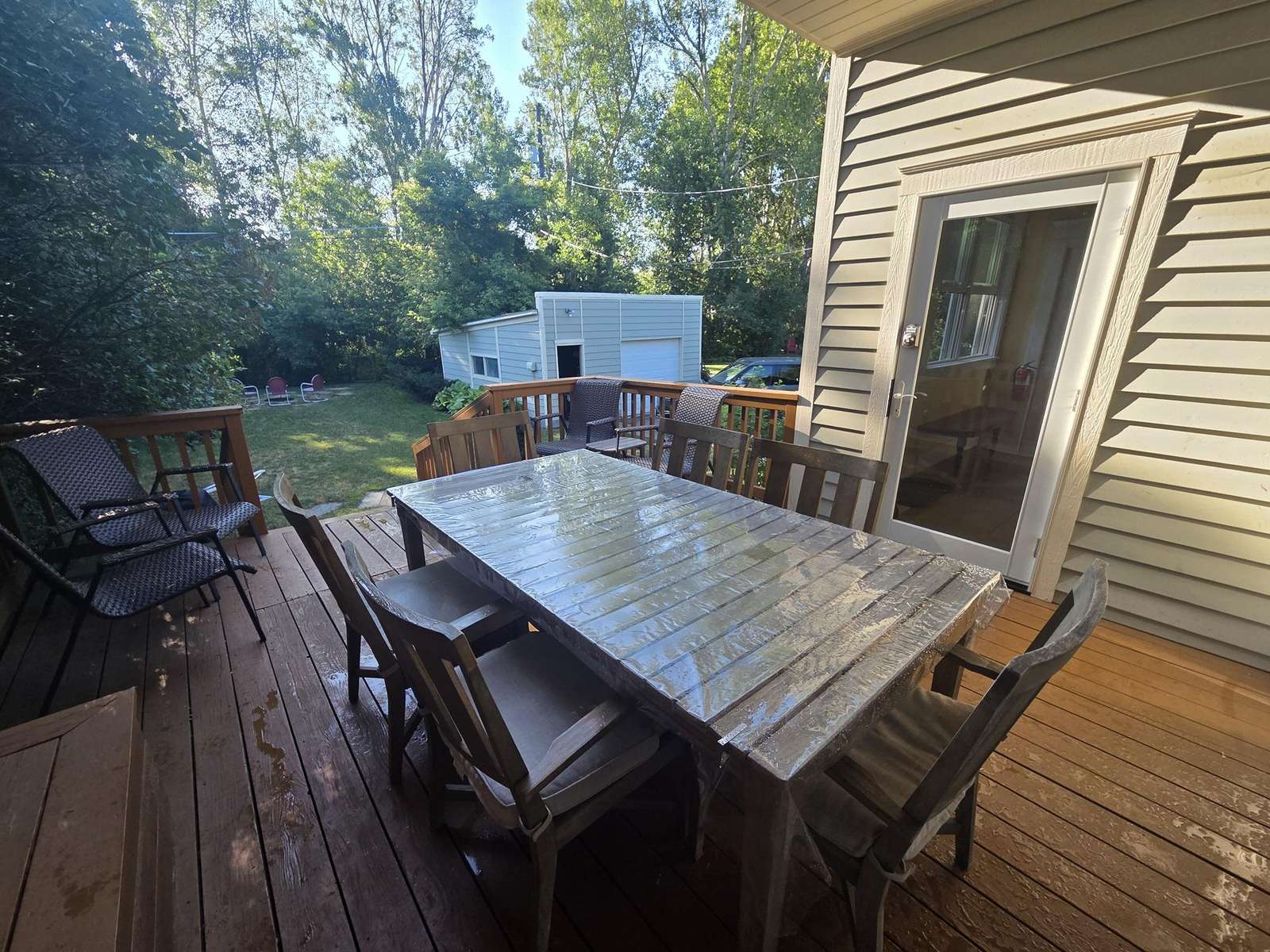 Backyard and deck, large parking area to the left